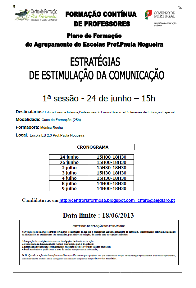 fase de acreditação como curso de formação contínua de Professores, pelo CCPFC,